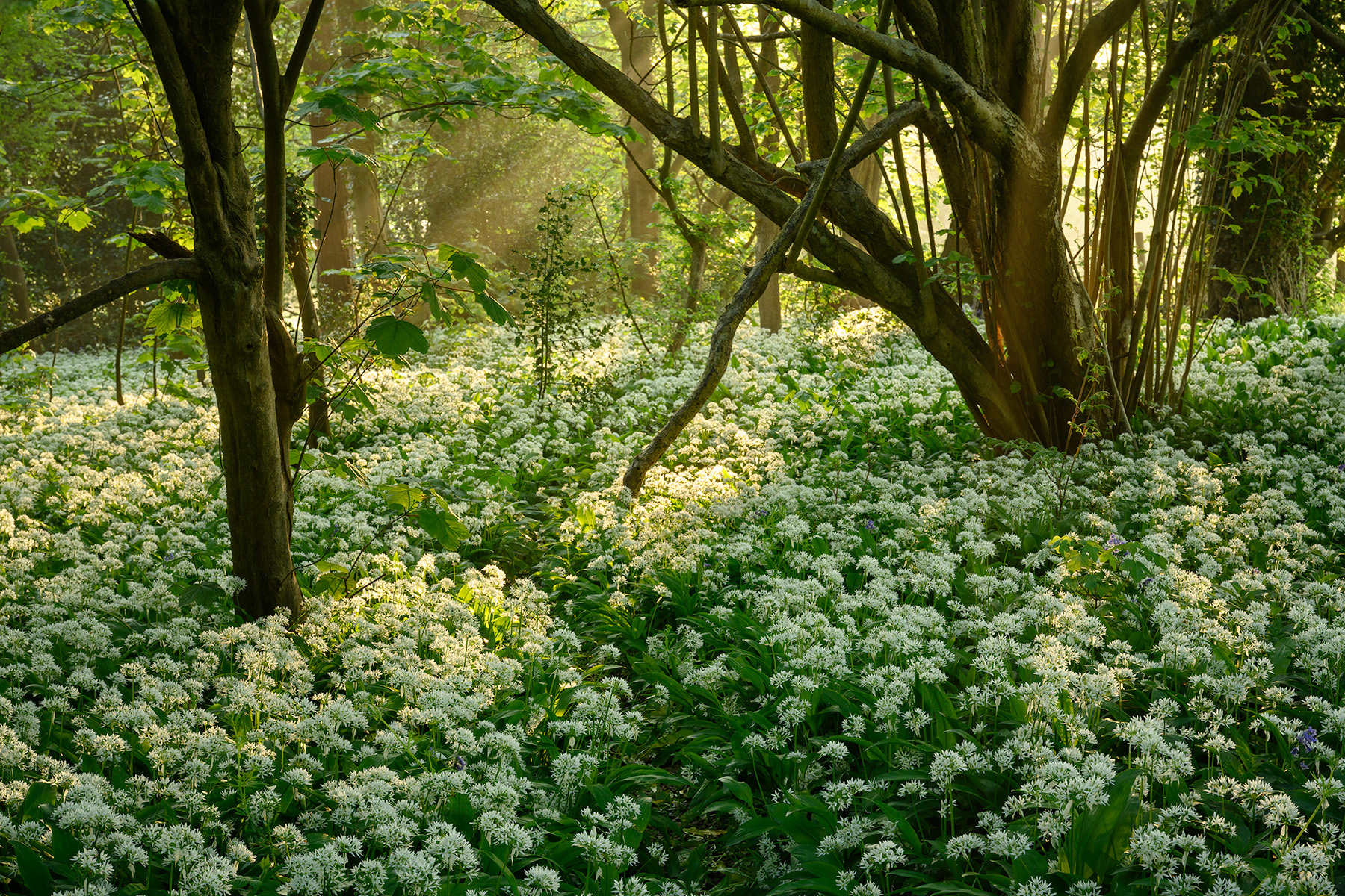 Wild garlic on a misty morning